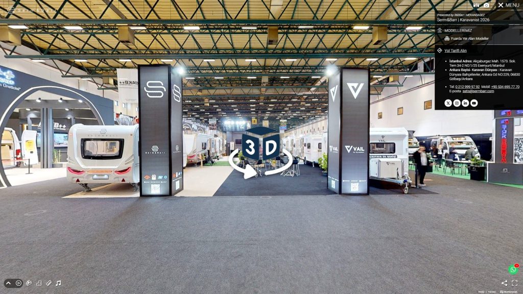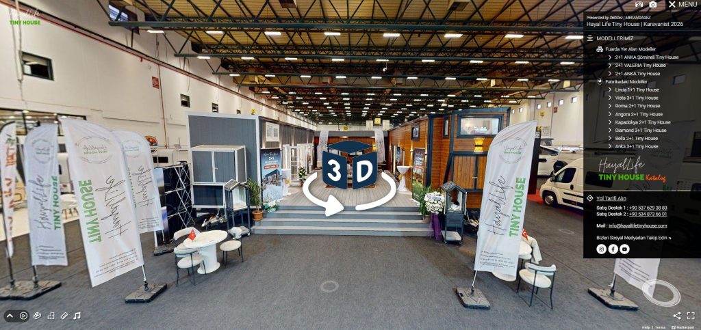 Yani her yıl yukarıdaki 3D Dijital İkiz versiyon ile müşterilerinize en güncel standınızı gezdirirken premium bir şekilde sunarken, geçmiş yıllardaki standlarınızı da herhangi bir cloud yenileme bedeli ödemeden Google Sanal Tur olarak arşivleyebilirsiniz.