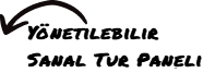 Yönetilebilir sanal tur paneli, sanal tur içine tanıtım videonuzu içeren TV ekleyebilme, her türlü medya metaryali destekli popup pencere etiketleri, gizlenebilir menülü, ürün yol tarifi özelliği, logonuz, arkaplan müzik, dilerseniz her teşrifat için arkaplan seslendirme gibi bir çok özellikleri barındıran yönetim paneli ile sanal turunuzu kendiniz yönetin.